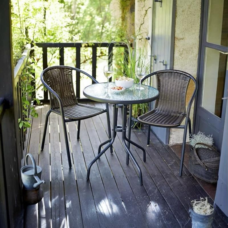 Rattan Bistro Set 3pc Grey/Black – 3 Piece Outdoor Garden Furniture Set with Tempered Glass Table and 2 Chairs, Sturdy Steel Frame, Compact Design for Patio, Balcony or Small Spaces – SupaGarden